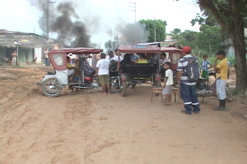 Esta vez los vecinos de este sector de Punchana bloquearon la calle Central con motocarros y quemaron llantas, además acusaron al dirigente del lugar, Raúl Aguilar, de estar a favor de los chinos a cambio de dinero.