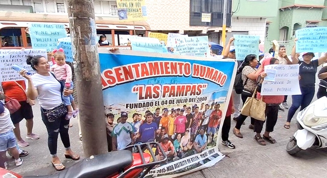 La manifestación fue encabezada por la secretaria general del AH Las Pampas, Victoria Acuña, quien señaló que los vecinos vienen soportando un deficiente servicio desde hace varios años. Afirmó que, pese a los reiterados reclamos, la empresa no ha dado solución a los problemas de abastecimiento.