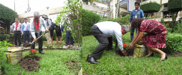 La actividad se aperturó con el discurso del Presidente de la Corte Superior de Justicia de Loreto, Mg. Javier Santiago Sologuren Anchante, quien a su vez sembró la primera planta en el jardín del frontis principal del palacio de justicia. “El verdor es lo que nos va a mantener vivos; es increíble como destruimos nuestro medio ambiente. En algún momento podemos apostar por los árboles y plantas como una formar de oxigenar nuestra ciudad, en reemplazo de otras energías contaminantes, así como reducir el uso excesivo de papel que conlleva a la deforestación. A pesar de ser un pequeño gesto, plantar un árbol o una planta puede ayudar a mejorar nuestro medio ambiente. Por otro lado, la constante contaminación de nuestro aire puede ser contrarrestada con esta acción; y así podemos difundir y motivar esta práctica en la familia, trabajo y comunidad. Desde nuestra institución continuaremos impulsando acciones semejantes las cuales forman parte de nuestro plan de trabajo de cuidado y conservación del medio ambiente”-refirió el Presidente.