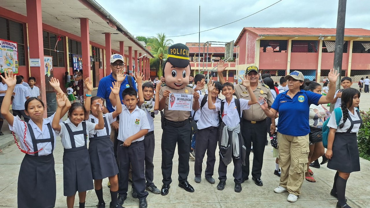 En dicha actividad, el personal PNP con el personaje “POLITO”, se ubicó en la puerta principal de ingreso al colegio, aprovechando la entrada y salida de los alumnos del turno mañana y tarde se distribuyeron 850 volantes aproximadamente, con mensajes preventivos de “no a la violencia”, “no a las barras bravas” con el Slogan “no manches la pelota con sangre”, acción que fue felicitado por padres de familias, maestros y transeúntes.