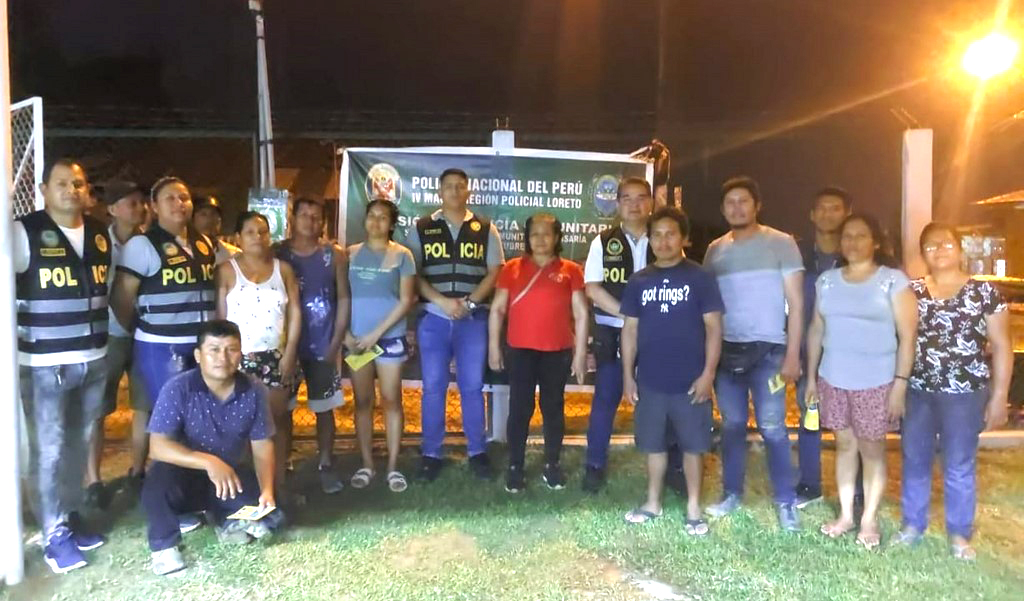 Reunidos en el local “Cuna Más”, la señora Adilia Pacaya Pinto – coordinadora de la Junta Vecinal “Héroes del Cenepa” y sus integrantes dieron la bienvenida a la comitiva policial, a su turno el Suboficial Superior PNP Evert Elvis Chávez Herrera, procedió a capacitar a los integrantes de la junta vecinal en temas de seguridad ciudadana, arresto ciudadano, funciones y atribuciones de las juntas vecinales.