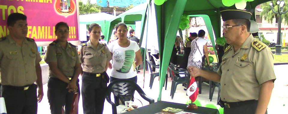 Tal como está previsto, la Policía Nacional como parte del programa celebratorio por su XXVI Aniversario de creación, cuyo fecha central es el próximo sábado 30 del presente mes, a través del Comando de la Región Policial Oriente y Dirección Territorial Policial Loreto, mediante sus diversas Unidades Especializadas, viene desarrollando la denominada Feria Informativa en la que participa un gran número de efectivos policiales, quienes montaron stands en el mismo centro de la Plaza de Armas con material impreso para informar a la colectividad de las acciones que ejecutan y la labor funcional que cumplen diariamente en favor de la población en general.