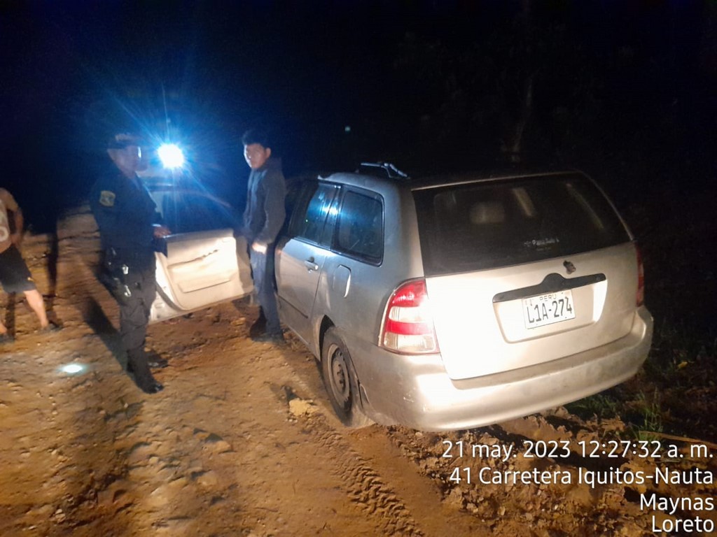 Cerca de la una de la madrugada de ayer 21 de mayo, en tiempo de flagrancia delictiva, efectivos PNP del Destacamento Protección de Carreteras – Iquitos, logró ubicar e intervenir al vehículo de placa L1A- 274, marca Toyota, modelo Corolla, color beige claro metálico, estacionado, en su interior se encontraba la persona que fue identificada como Salvador López Magipo (20), quien sería el presunto conductor y autor del accidente de tránsito – atropello y fuga, ocurrido en el km 37 de la carretera Iquitos – Nauta, sector Paujil, en agravio de Roger Rengifo Portocarrero (63).