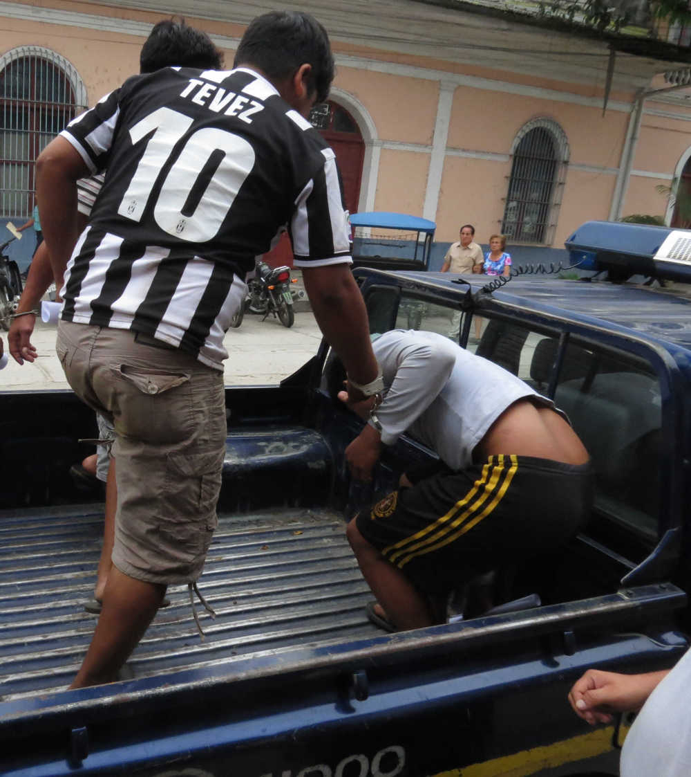 Minutos después llego personal del serenazgo de Maynas y del departamento de emergencia de la policía nacional, quienes redujeron a los asaltantes y les subieron a una camioneta del serenazgo para luego llevárselos hasta al comisaría Morona Cocha para las diligencias de ley. (C. Ampuero)