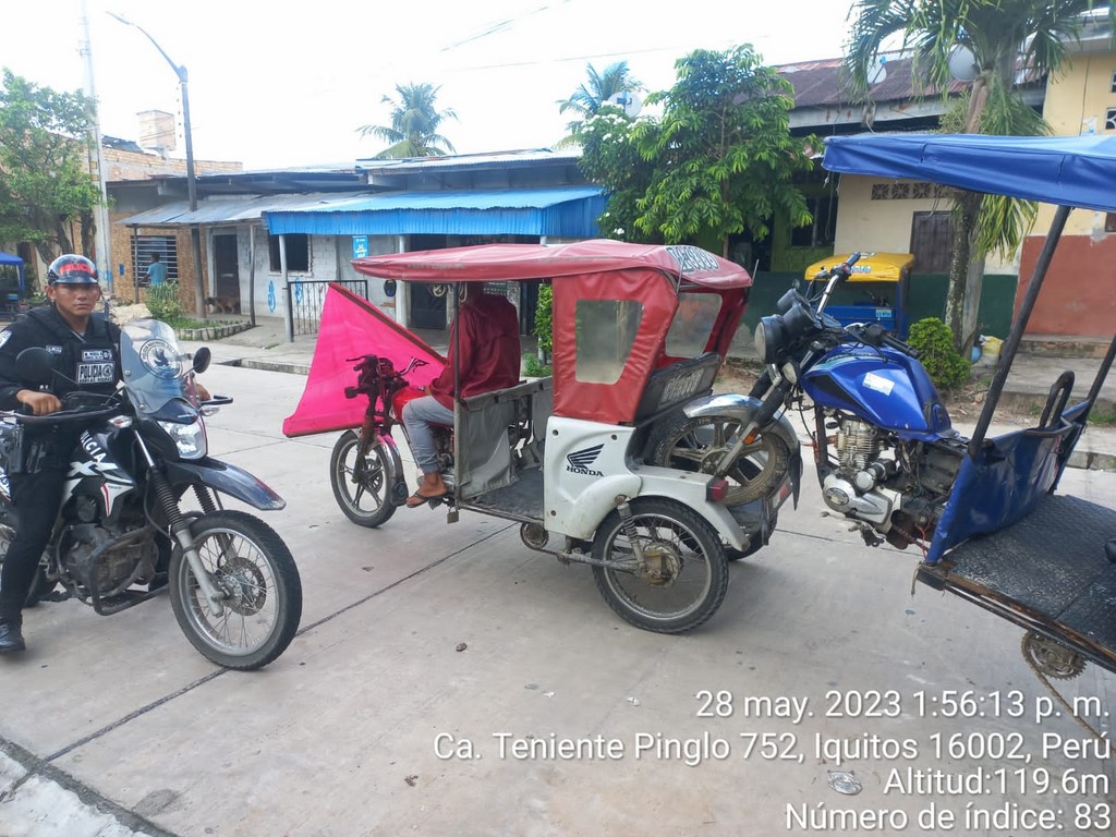 Cerca de las 2 de la tarde de ayer 28 de Mayo, efectivos PNP de la unidad de Emergencia 105 “Águilas Negras” de la IV Macro Región Policial Loreto, al mando del comandante PNP Percy Pérez Elizalde, en circunstancias que realizaban labores de patrullaje preventivo por las diferentes calles de la ciudad, intervinieron en la calle Teniente Pinglo, entre las calles Arequipa y Pablo Rosell, en respuesta a una llamada telefónica a la central policial del 105, recuperando un vehículo menor motocarro con orden de captura vigente por hurto de fecha 28 de mayo del 2023, denunciado por Jhonny Daniel Monsalve Vásquez.