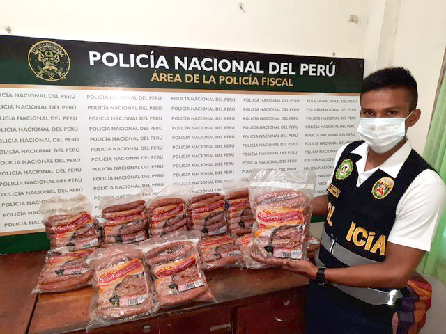 En la unidad, con participación de la intervenida procedieron al conteo total de la mencionada carga haciendo un total de 150 paquetes de plástico de aprox. 2.5 Km cada uno, conteniendo en su interior Calabresas marca Seara, los mismos que no contaban con la documentación que acredite su ingreso legal al territorio peruano, procediendo a su incautación ante la presunta comisión del delito aduanero – Contrabando, cuyo monto ascendería a un monto aproximado de 7 mil 500 soles.