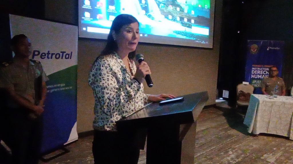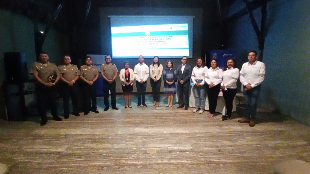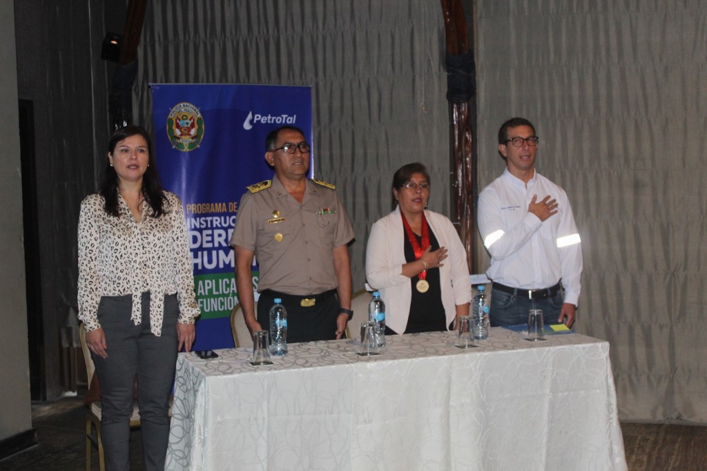 Ayer en horas de la mañana, en las instalaciones del Hilton Hotel, ubicado frente a la Plaza de Armas de Iquitos, se desarrolló la ceremonia de inauguración del referido curso, al acto de inauguración estuvieron presentes el general David Pablo Villanueva Yana, Jefe de la Región Policial Loreto, ingeniero Guillermo Flores Mecklemburg, Gerente General de la Empresa PetroTal y la señora Graciela Arrieta Guevara, Presidenta de Hidrocarburos de la Sociedad Nacional de Minería, Petróleo y Energía (SNMPE), entre otros funcionarios de la empresa PetroTal; el cual en amplia coordinación viene apoyando la ejecución de esta ciclo de capacitación a los efectivos policiales pertenecientes a la Región Policial Loreto, conforme a los lineamientos del comando institucional específicamente en lograr la especialización de los efectivos policiales y en el marco de las acciones orientadas a fortalecer las capacidades respecto al entrenamiento y mejora continua para la ejecución de este curso de capacitación para la formación de instructores en derechos humanos en la ciudad de Iquitos; con la finalidad de establecer nuevos cuadros a fin de que la doctrina en el marco normativo nacional e internacional relacionado al Uso de la Fuerza, sea replicado eficientemente por los efectivos policiales perteneciente a la Región Policial de Loreto, desarrollando sus capacidades cognitivas procedimentales y actitudinales integrando y fundamentando la norma en cada uno de los procedimientos policiales.