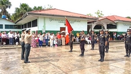 El acto protocolar inició con la llegada del general PNP Fernando Enrique Mego Avellaneda, jefe de la Región Policial Loreto, quien fue recibido con los honores de orden por el Suboficial Técnico de Primera PNP Víctor Paredes Ayapi. Como es tradición, el alto mando policial saludó a la Bandera de Guerra y pasó revista al personal formado, marcando el inicio solemne de la jornada institucional.