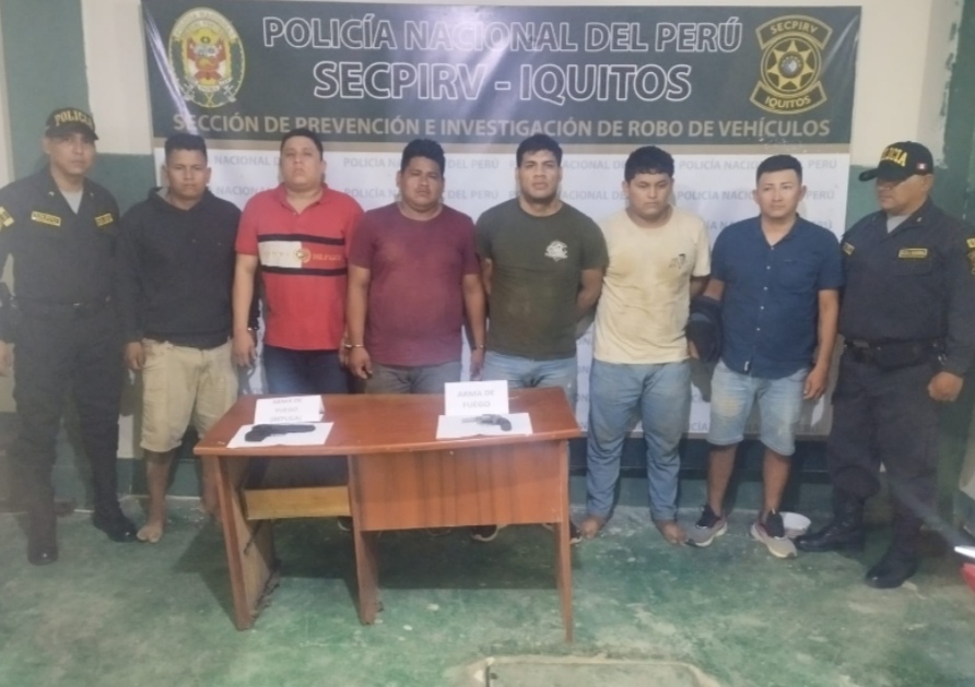 Como resultado de la mencionada intervención policial lograron intervenir a 6 personas identificados como Neyser Alexander Lorenzo Guzmán (31) alias “Chino Urbano”, Randi Alexander Burga Macedo (22) alias “Gato”, Tito Cesar Jaramillo Navarro (29) alias “Bambino”, Denis Daniel Reátegui Murrieta (26) alias “Gringasho, José Manuel Arévalo Ramírez (27) y Acevedo Vílchez Pizango (35), los mismos que estarían implicados en el presunto delito contra el patrimonio – robo agravado, presunto delito contra la seguridad pública – peligro común – fabricación, uso o porte de arma de fuego, y presunto delito contra la tranquilidad pública – banda criminal; quienes fueron interceptados a las 04:10 de la madrugada de ayer en el asentamiento humano Violeta Correa – a unos 50 metros del frontis de la institución educativa Violeta Correa en el distrito de Belén.