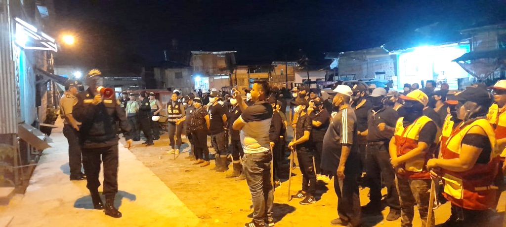 El comandante PNP Luis Alberto Mesías Pedraza, al mando de 14 efectivos PNP de la comisaría de Punchana, con el apoyo del personal ORI, DEPROVE, TRANSITO, RQ, 105 y Relaciones Públicas de la Región Policial Loreto, y 110 integrantes de las Juntas Vecinales de Seguridad Ciudadana de Pilar Nores en acción, José Olaya, Bellavista Nanay, Santo Tomás, previa concentración realizada en la cancha de fulbito del asentamiento humano “Pilar Nores” y previas recomendaciones realizadas por parte del comisario de Punchana sobre arresto ciudadano, derechos humanos, se dio inicio a la Ronda Mixta.