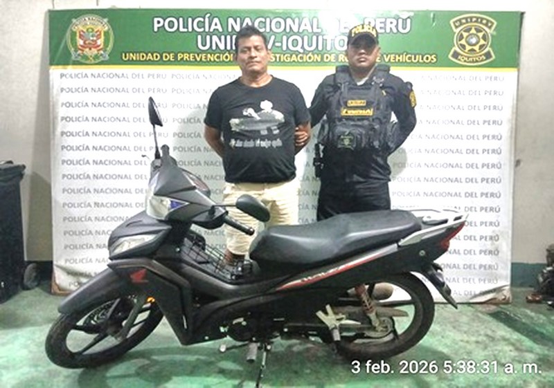 Durante la intervención fue detenido Carlos Leonidas Meléndez Tuanama (51), quien habría incurrido en el delito de receptación agravada, tras hallarse en su poder una motocicleta que contaba con requisitoria vigente por robo.
