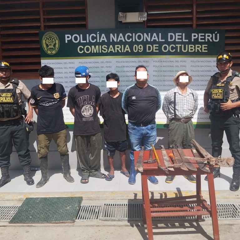 El Comandante Julio Cesar Roman Quispe – Comisario de 9 Octubre, dio a conocer que, lograron la intervención de las personas Manuel Daniel Zevallos Ruíz (52), Rey Jesús García Grandez (22), Ulises Rengifo Caballero (39), Hernán Sánchez Shuña (45) y el menor G. G. R. Z. (15), quienes son investigados por los delitos señalados en agravio de Gabriel Valdivia Isuiza(61)
