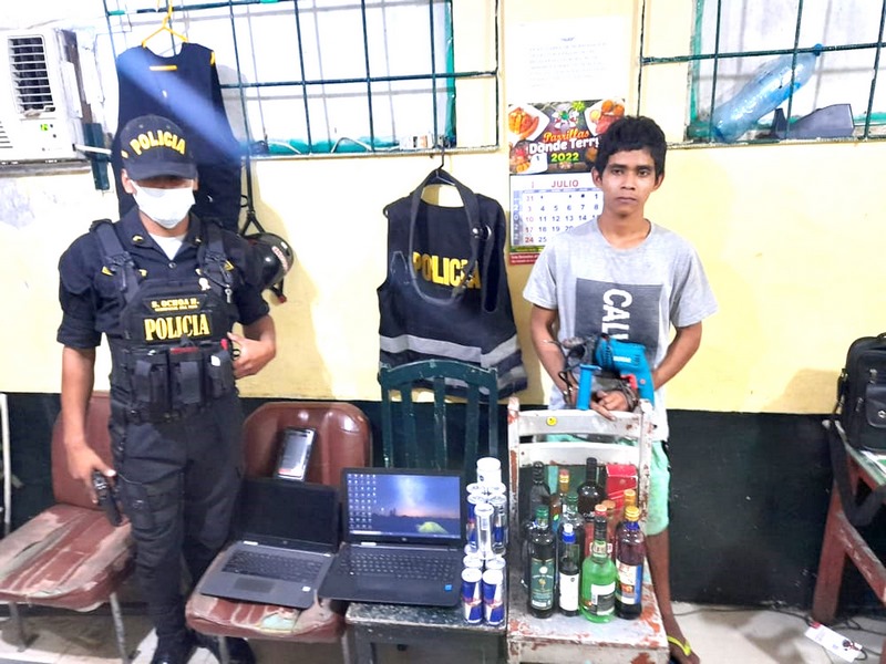 En el lugar, el individuo intervenido refirió que los había sustraído del interior de la discoteca quien violentó la puerta para lograr ingresar; por lo que de inmediato el sujeto intervenido y los bienes fueron trasladados hasta la Comisaría de Belén, siendo puesto a disposición en calidad de detenido área de delitos y faltas para la diligencia de ley con participación del representante del Ministerio Público Abg. Arturo Guido Alegría Oscos – Fiscal Provincial de la 3ª Fiscalía Provincial de Maynas.
