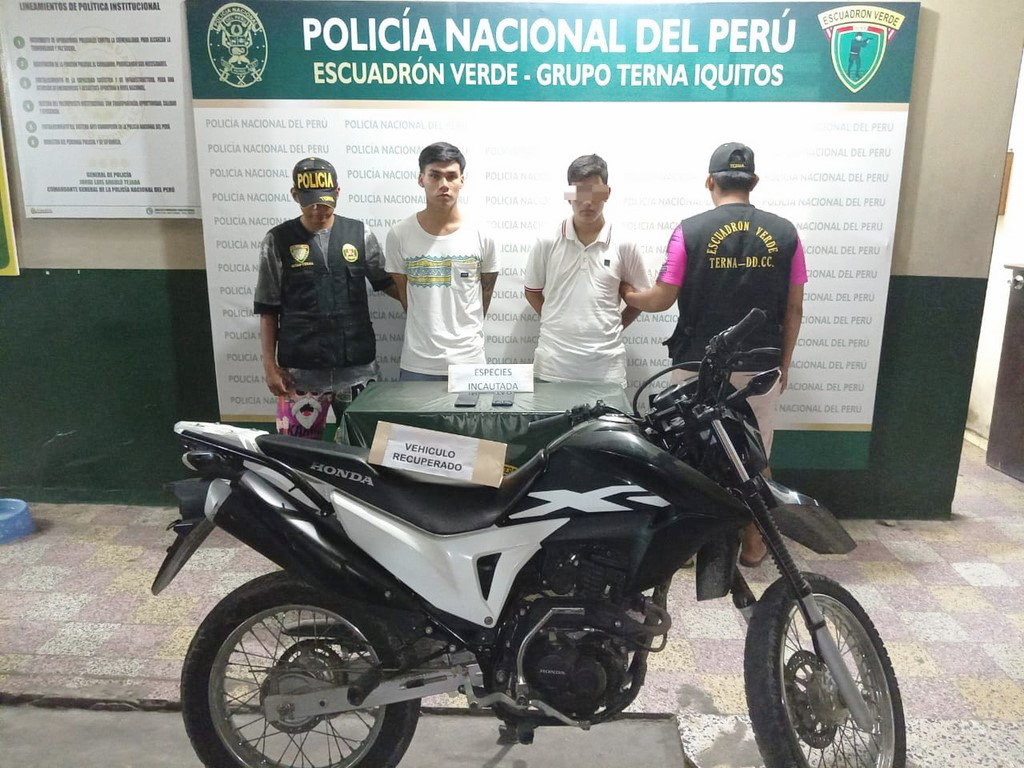 Agentes PNP del Escuadrón Verde – Grupo Terna Iquitos, en circunstancias que efectuaban labores de inteligencia operativa, en la Av. Del Ejército con calle San Román – Iquitos, lograron intervenir y detener a Junior Giuliano Salina Pinchi (21) alias “chino” y el menor de iniciales A.A.A.R. (17), alias “Apolo”, inmersos en la presunta comisión del delito contra el patrimonio, en la modalidad receptación de motocicleta reportada por Hurto, marca Honda, modelo XR190L, color negro, motor N° MD43E2080247, Serie: LALMD4390M3170230, el cual en el sistema ESINPOL-RQ-Vehículos figura reportado por hurto, de fecha: 08 de julio del 2003. Dicho vehículo, al parecer habría sido utilizado en la perpetración del asalto y robo agravado, en agravio del fiscal, Claudio Ray Arévalo Alva fiscal.