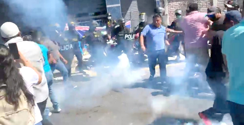 En el tercer día de huelga nacional indefinida acatada por los trabajadores del ministerio público, personal de la Policía Nacional del Perú reprimió a los huelguistas con gases lacrimógenos en las afueras de la sede de esta institución del Estado, ubicada en la calle Samanez Ocampo en el distrito de Iquitos.