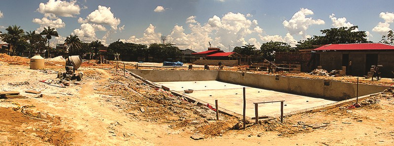 Los trabajos que se vienen desarrollando son el enchapado de los muros de los servicios higiénicos de los módulos de las piscina semi-olímpica, pintado de las calaminas corrugadas, en la losa multiusos ya se culminaron los trabajos de sellado de juntas y finalmente el tarrajeo de los muros de colocación de la mencionada piscina.