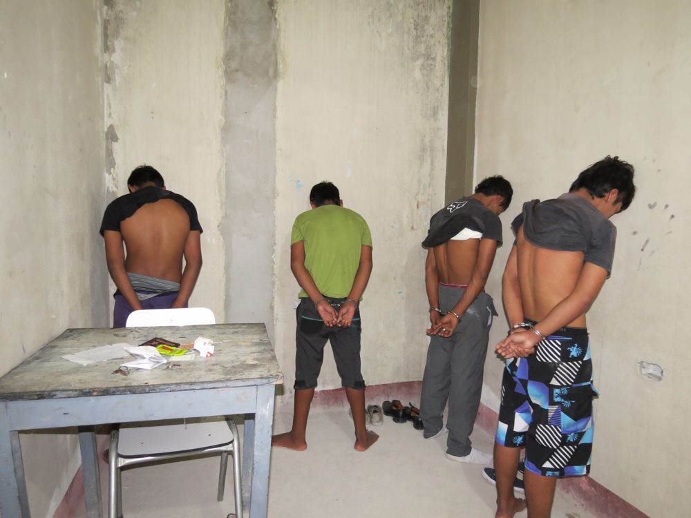Un poco más y no lo cuentan. Los efectivos del orden de la Comisaría 9 de Octubre tuvieron que intervenir para disuadir a una enardecida turba y evitar que sigan castigando a cuatro menores que minutos antes habían arrebatado el celular de una jovencita que pasaba por los cruces de las avenidas Quiñones con Guardia Civil. Los menores de las iniciales L.M.G (16), L.F.G (14), D.V.G (14) y D.Y.D (17) fueron brutalmente golpeados por vecinos de la zona y motocarristas que lograron impedir que los delincuentes se dieran a la fuga; tal es el caso, que un trabajador del grifo «Pampachica» amenazó a los susodichos con la manguera del surtidor con el fin de echarles gasolina, «era obvio que no lo iba a hacer, pero ganas no me faltaron de bañarles con combustible y prenderles fuego por rateros, a ellos no les importa nada, solo roban y se dan a la fuga, pero esta vez no se escaparon y que agradezcan a la policía que prácticamente les salvo la vida, porque si no ni te imaginas lo que les hubiéramos hecho; ya está bueno, la justicia popular se debe aplicar en Iquitos», sostuvo un trabajador del mencionado grifo.