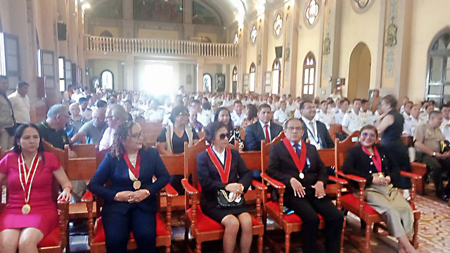 El presidente de la Corte, Dr. Reynaldo Elías Cajamarca Porras, participa en la misa y procesión con motivo de celebrarse el día de Santa Rosa de Lima, patrona de Las Américas, Filipinas, y de la Policía Nacional del Perú, la cual organizó el homenaje a la Santa en la Plaza de Armas de la ciudad de Iquitos, como todos los años con la presencia de diversas instituciones devotas de la santa.