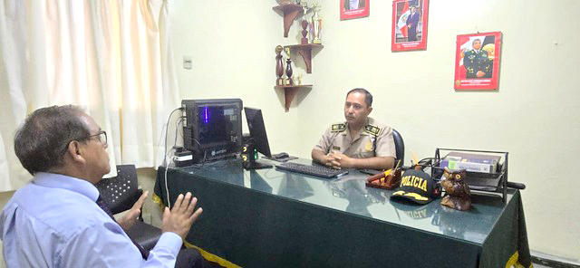 El comisario. Mayor PNP Frank Armando Fortes Claro, expreso su entusiasmo y gratitud al Presidente de la Corte de Loreto por la visita a las instalaciones de la Sede Policial, expresando su satisfacción al recibir al magistrado y poder dialogar sobre las acciones tomadas con respecto a los delitos que la unidad piloto ataca. “No es muy común que autoridades de tan alta investidura como usted, nos visite”, expreso.