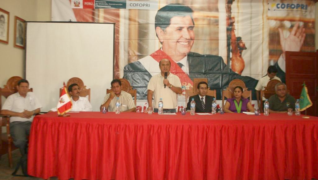 Abundando un poco más sobre el particular, la primera Autoridad Regional dijo que hace tres días estuvo con el Presidente electo Ollanta Humala, donde recalcó este tema. «El hombre que tiene propiedad y no tiene documentos, no tiene nada. Pero su título le ayuda a pedir créditos, transferencias y otras transacciones más. La transferencia de COFOPRI vino acompañado de fondos que nos van a permitir en esta etapa trabajar 400 predios rurales, 23 comunidades nativas que suman 700 familias o 3 mil 500 personas. La idea es darles a todos sus títulos de propiedad, lo que muy pronto, estoy seguro, se verá fortalecido con otras economías, así como el Gobierno Regional también colaborará con fondos de su presupuesto anual», sostuvo.