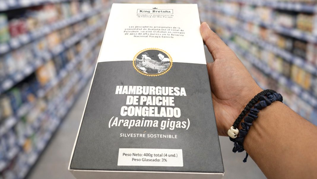 Los nuggets, hamburguesas y trozos de paiche King Bretaña son producidos por los pescadores del distrito de Puinahua que extraen los ejemplares cumpliendo un programa de manejo sostenible aprobado por la autoridad competente.