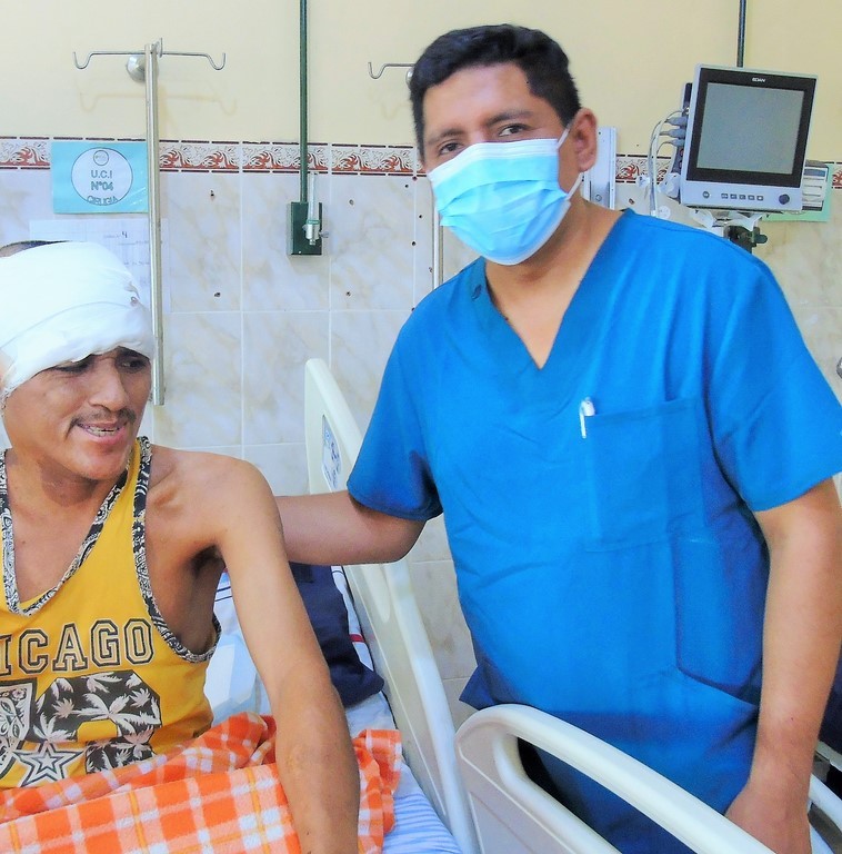 El último beneficiado con una operación difícil, compleja, ha sido Leonidas Dueñas Monzón (34), natural de Mazán. Ayer se le visitó en el área de cuidados intermedios. Dueñas, contó que cuando tenía 8 años lo operaron, pero que después le empezó a crecer ese tumor en toda la cabeza. Solo concluyó el nivel primario de educación. Luego se dedicó a la agricultura. Dijo sentirse mucho mejor y estar muy agradecido con el Dr. Gómez y el equipo de profesionales del hospital regional.