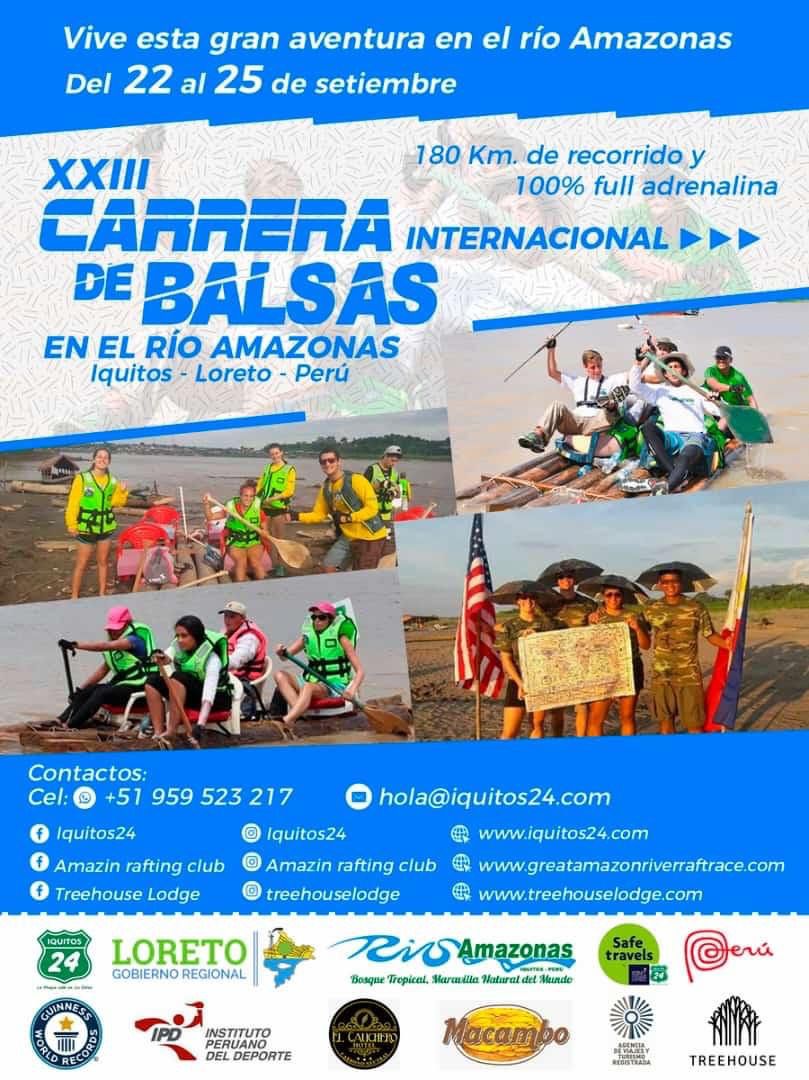 Del 22 al 25 de este mes se llevará a cabo la XXIII Carrera de Balsas en el río Amazonas, evento organizado por la empresa Iquitos 24 con apoyo del Gobierno Regional de Loreto. El recorrido será de 180 kilómetros y se desarrollará en 3 jornadas con descansos en localidades amazónicas, con la finalidad de volverlas atractivos turísticos.