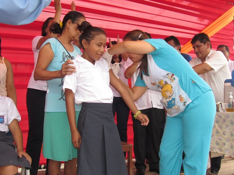 La Dirección Regional de Salud de Loreto programó la vacunación contra el Virus del Papiloma Humano-VPH, de 14 mil niñas que cursan el quinto grado de primaria en toda la región Loreto, con el objetivo de disminuir la incidencia de casos de cáncer de cuello uterino.