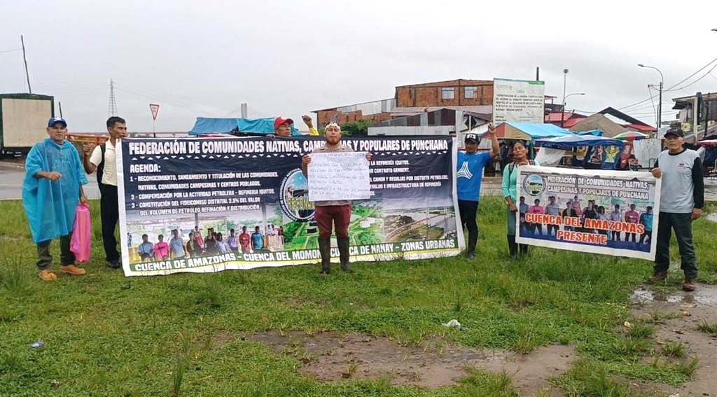 Un grupo de pobladores rurales que habitan la zona de Progreso en el sector ribereño del distrito de Punchana, realizaron una protesta en el óvalo del puente sobre el río Nanay para expresar su incomodidad por un incidente de contaminación que atribuyen a la refinería Iquitos de Petroperú.