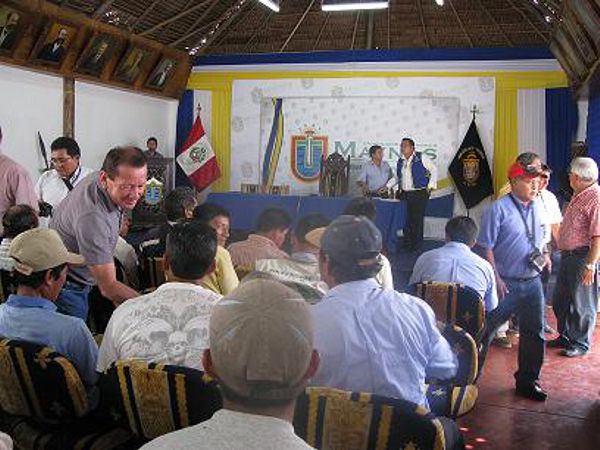 El Alcalde de Maynas Charles Mayer Zevallos Eyzaguirre, dentro su política de acercamiento entre los pueblos y su autoridad, se dirigió a más de un centenar de autoridades comunales de los diferentes centros poblados, caseríos y comunidades rivereñas ubicados dentro de la jurisdicción de la provincia de Maynas. El motivo de su intervención fue la inauguración del seminario de capacitación para agentes municipales y tenientes gobernadores realizado el viernes de esta semana en los ambientes de la maloca municipal.