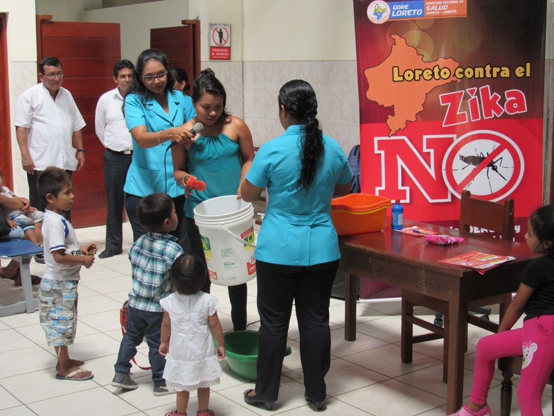 En el Centro de Salud de Bellavista Nanay, más de 100 usuarios de este establecimiento fueron también informados sobre esta enfermedad y aprendieron técnicas de lavado de envases y objetos donde suelen depositar sus huevecillos estos zancudos portadores del virus Zika.