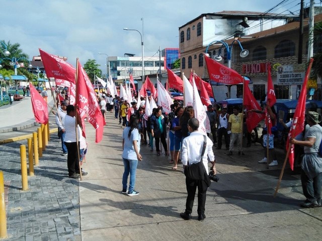 La marcha pasó por la Av. Quiñones, Municipio de San Juan Bautista, vías cercadas y luego llegaron hasta el local del sindicato en el km 1.5 de la carretera Iquitos-Nauta. (R. Graicht)