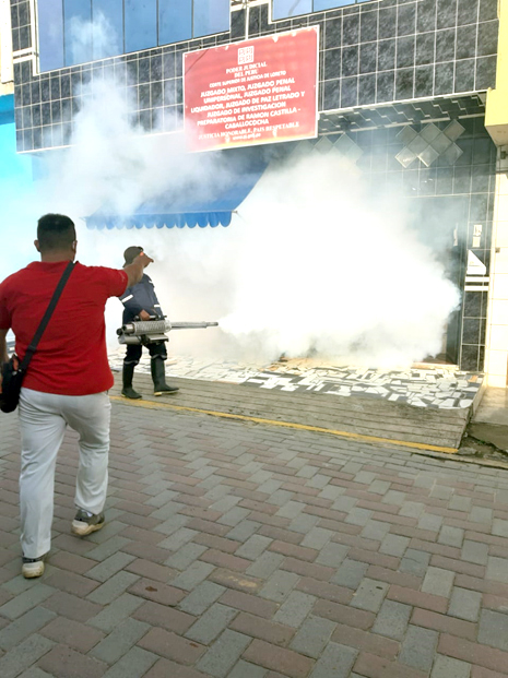 Así, para la primera semana de Febrero, se han desinfectado las instalaciones de los juzgados de la sub sede de Ramón Castilla – Caballococha, y de la Segunda Sala Penal de Apelaciones de Loreto (sede central).