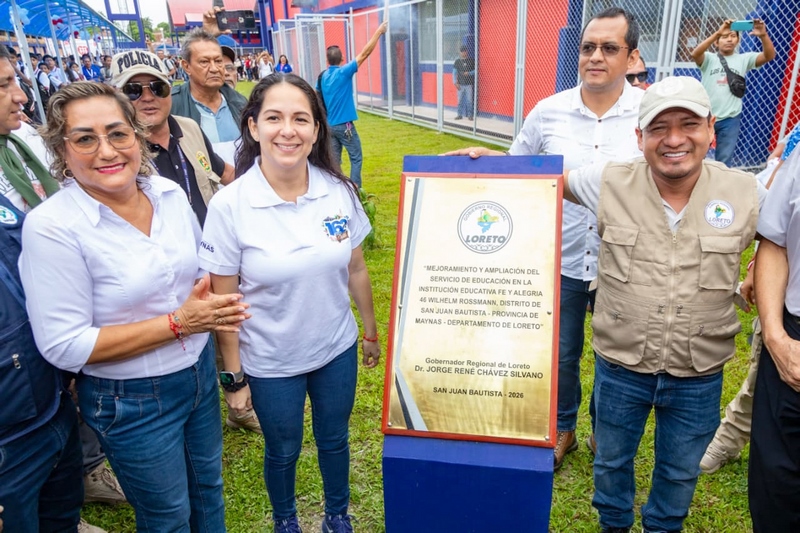 Con una inversión superior a los 41 millones de soles, el gobernador regional de Loreto, Dr. Jorge René Chávez Silvano, inauguró la Institución Educativa Fe y Alegría 46 Wilhem Rossmann, ubicada en el distrito de San Juan, considerada una de las intervenciones más importantes ejecutadas en el sector educativo de la región. La ceremonia reunió a padres de familia, docentes, estudiantes y autoridades locales, quienes participaron de la apertura oficial de esta moderna infraestructura.