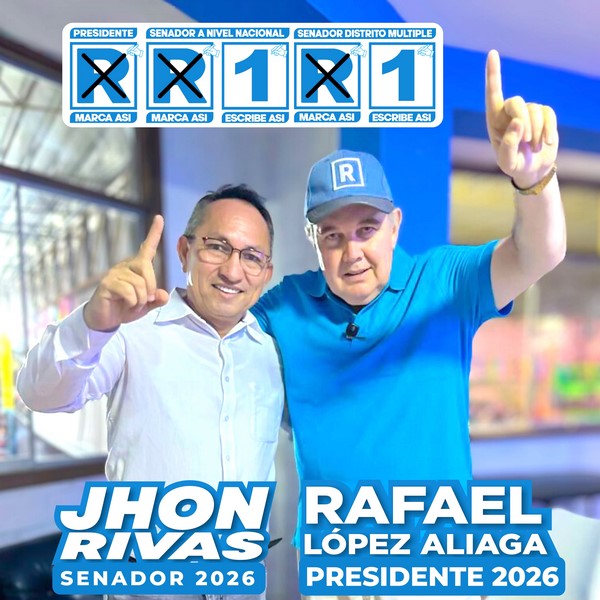 Soy Jhon Rivas, voy al senado para representar a nuestro Loreto en la cámara de Senadores, estamos en la fila “33” de la cedula de votación en la tercera columna, debes marcar la “R” y escribir el “1”, el análisis de cada propuesta los invito a conocer, conectándose todos los jueves de 6.00 PM a 7.00 PM en mi programa virtual “conversando con Jhon Rivas” que se emite en vivo por Facebook y Tik Tok, en la página Jhon Rivas Senador 2026, para también responder a sus preguntas e interrogantes. El Perú merece ser Renovado, Loreto necesita una Renovación total, para ello no más de los mismos.