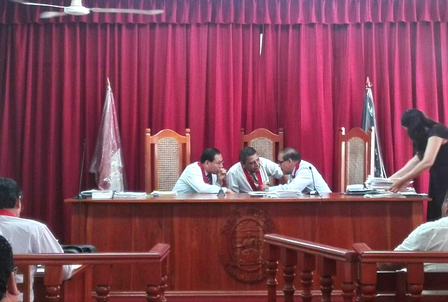 La Sala Penal de Apelaciones de la Corte Superior de Justicia de Loreto, a cargo de los magistrado Aldo Nervo Atarama Lonzoy, Manuel Humberto Guillermo Felipe y Reynaldo Elías Cajamarca Porras, en audiencia pública realizada el día de ayer, tras evaluar todo los hechos de convicciones y los elementos del caso, resolvió declarar infundado el recurso de apelación de la defensa de Joiner Ahuanari Salas, ratificándole la condena de 10 años de pena privativa de la libertad en su contra y el pago de 500 soles de reparación civil a favor de la parte agraviada. (Oficina de Imagen Institucional – CSJ Loreto)