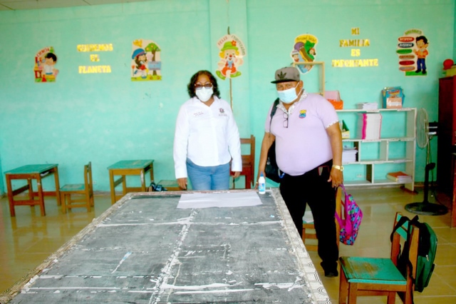 En el lugar de los hechos, la Gerente Municipal Dora Vigo Rios, comprobó el mal estado de la parte de ingreso al colegio ubicado en la calle Virgen de las Nieves, a un costado de ingreso a los asentamientos humanos a espaldas de la fábrica La Iquiteña Km. 3.700 carretera Iquitos Nauta.