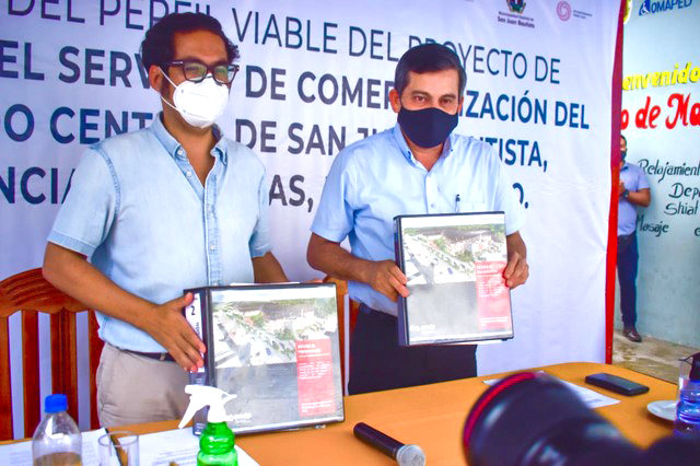 Quiero recordar que han sido los vecinos de Secada, Villa Disnarda, Progreso y de otros cercanos para adelante la próxima construcción del mercado central de San Juan Bautista, tenemos seis mercados en el distrito. El ex cementerio de San Roque era un problema para retíralo, pues desde hace muchos años había sido clausurado por la autoridad sanitaria, y hoy; nos va servir para construir nuestro centro de abastos. El veinticinco de noviembre del 2020, el Ministerio de la Producción con la MDSJB estableció un convenio para la creación del servicio de comercialización del mercado central de San Juan Bautista en el ex cementerio de San Roque, y se está logrando el propósito pues ya se comenzó el traslado de las osamentas a otro cementerio. Señor ministro José Luis Chicoma Lucar, San Juan Bautista es su casa y le damos la cordial bienvenida, y entregar el perfil, para su pronta construcción acotó el burgomaestre.