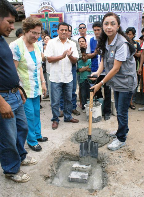El regidor de la Municipalidad Distrital de San Juan Bautista, Carlos Herrera, acompañó, el día ayer, a la alcaldesa de Maynas durante la colocación de la primera piedra en la calle Los Rosales.