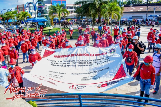 En trascendental ceremonia realizada a las ocho de la mañana de ayer, en la Plaza Abelardo Quiñones, se llevó a cabo el inicio de la apertura de las 17 actividades de Intervención Inmediata del Programa Trabaja Perú, de acuerdo al Decreto de Urgencia No. 070-2020.
