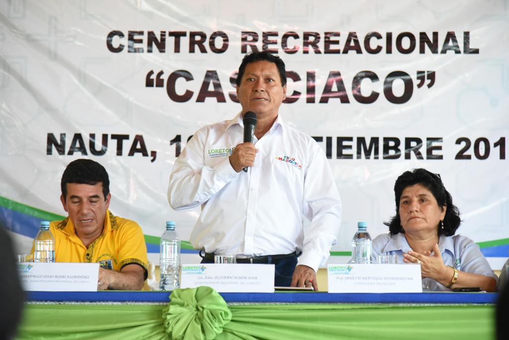 El gobernador regional de Loreto, Lic. Elisbán Ochoa, presidió la audiencia pública de rendición de cuentas I semestre, Año Fiscal 2019 del gobierno regional de Loreto en el auditorio del Centro Recreacional Casiciaco, en la ciudad de Nauta.