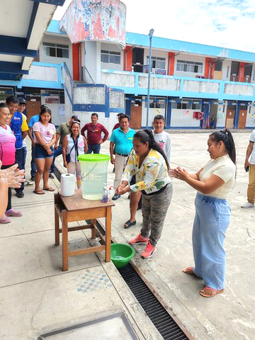 Durante las actividades, el personal de salud realiza demostraciones sobre el correcto lavado de manos con agua y jabón, enfatizando su importancia para evitar enfermedades diarreicas, respiratorias y otras infecciones comunes.