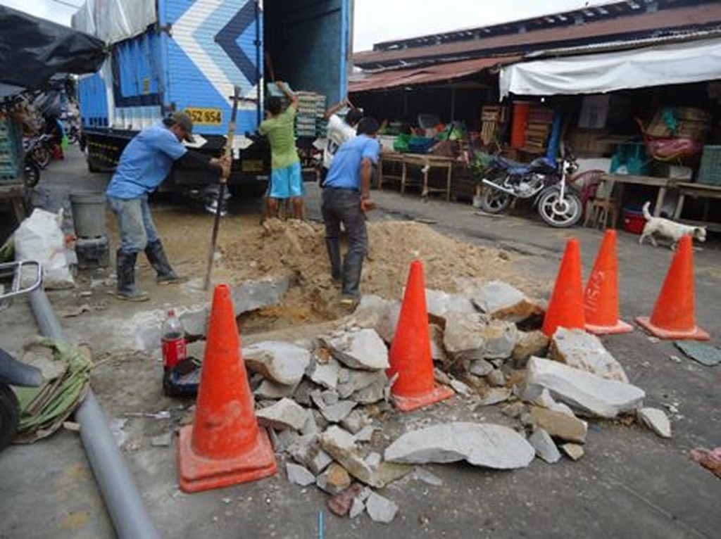 Anteayer en horas de la madrugada, al iniciar el bombeo de agua potable a la ciudad, se produjeron 2 roturas de tuberías secundarias, una en la cuadra 9 de la calle Nanay y la otra en Faning con Cáceres, se desembonaron las conexiones a consecuencia de una mala compactación que se hizo al colocar los buzones de la obra del alcantarillado que con el paso permanente de vehículos pesados ha ido cediendo el suelo hasta colapsar la tubería de 4″ pulgadas de PVC ocasionando fuga, desperdicio y lógico desabastecimiento de agua en las calles aledañas a dichos sectores.