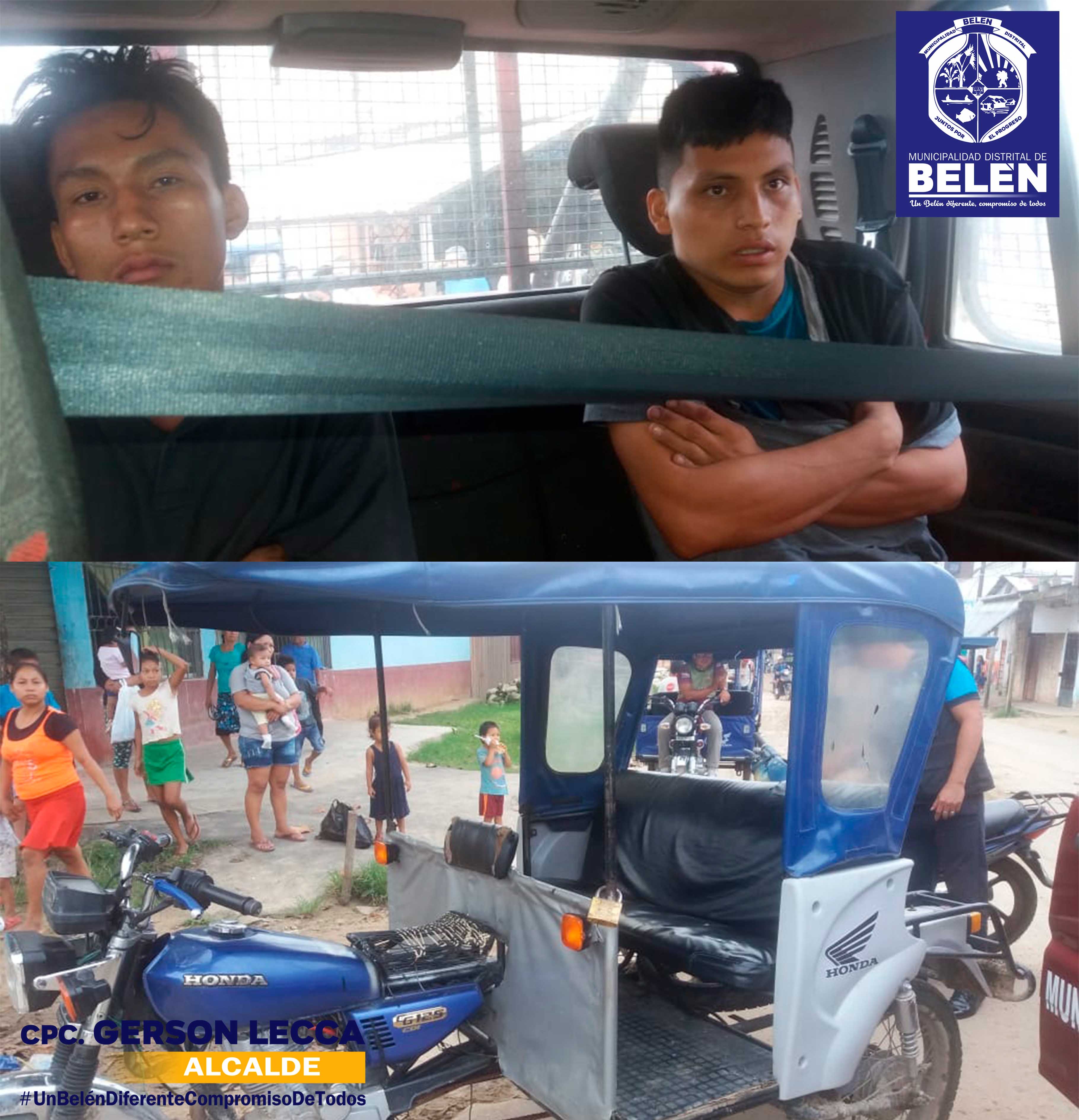 Al llamado de los vecinos, los miembros del Serenazgo de Belén, de manera conjunto con al Área de Tránsito y la Policía Municipal, se dirigieron al sector de forma inmediata, logrando intervenir a los dos sujetos a bordo de un motocarro azul, sin placa de rodaje, poniéndolos a disposición de la comisaría 9 de Octubre para las investigaciones del caso.