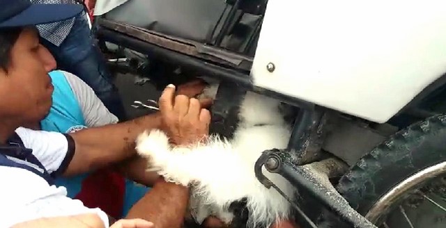 Importante labor que hizo personal del serenazgo de San Juan, al auxiliar a un cachorro que quedó atrapado entre el sistema de arrastre de un motocarro. El hecho ocurrió cuando se celebraba la fiesta patronal de San juan, en la zona sur de la ciudad.