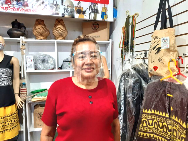 Hasta ahí no salían todavía los concursos del Mincetur. A nivel nacional han salido los artesanos a formar una federación y ellos hacían los pronunciamientos que también nosotros queríamos los bonos como artesanos. Acá tenemos artesanos indígenas y mestizos. Pero, buscamos estrategias para empoderarnos y ver cómo vender nuestros productos. Postulamos por una ONG y como asociación ganamos un concurso por 10 mil soles y lo invertimos en el kit de herramientas, adquirimos bolsas, sellos, tarjetas personales, etiquetas y abrimos nuestra página web y Facebook, así como materiales de bioseguridad y todos estamos felices.