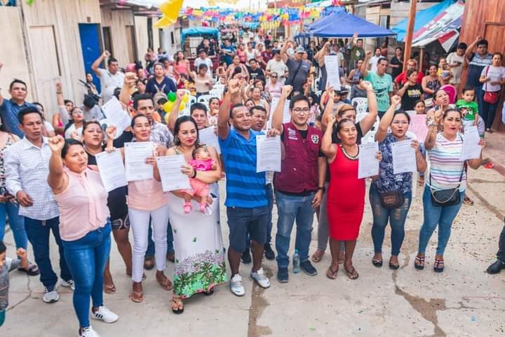 En medio de una gran algarabía y con carteles de agradecimiento en mano, las familias del asentamiento humano «Las Lomas de Pampachica» recibieron al primer regidor de la Municipalidad Distrital de San Juan Bautista Diego Bolivar Tuesta, quien en representación del alcalde del mencionado distrito, junto a los funcionarios llegó hasta el lugar para hacer entrega de un total de 92 Constancias de Posesión.
