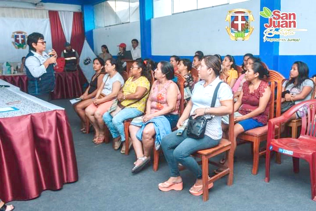 Continuando con sus ciclos de charlas en favor de la población sanjuanina, la Municipalidad Distrital de San Juan Bautista, a través del Comité Distrital de Seguridad Ciudadana – CODISEC, en coordinación con la Gerencia del Ambiente y la División de Vigilancia Sanitaria, brindaron una charla de sensibilización sobre buenas prácticas a las personas, además de temas preventivos sobre la violencia contra la mujer, dirigida para los comerciantes del mercado “Progreso” y para aquellos que cuentan con puestos de abarrotes, restaurantes, kioscos, hospedajes y otros.