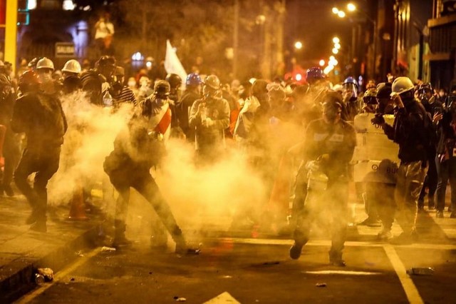 Lanzaron bombas lacrimógenas para disuadir a la población. Declara el presidente que deja sin efecto el controversial e infame Decreto. No más medidas inconstitucionales, pero en mal momento, lo anuló en el Congreso. De pacífica y racional manifestación, se tornó en delincuencial disturbio con saqueos de negocios e instituciones de los que aprovecharon el tumulto.