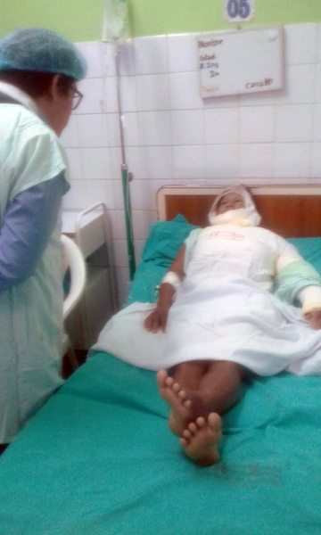 El Dr. Jorge Flores, subdirector del Hospital Regional de Loreto “Felipe Arriola Iglesias”, dijo que el estado de salud de la paciente es estable. El médico dijo también que la mujer no tiene familiar en el hospital quien pueda velar por ella, “fueron los colegas del centro de salud de Mazán quienes refirieron a la señora hasta Iquitos, el hospital está corriendo con todos los gastos. La paciente está estable, estuvo en tratamiento por los cirujanos del hospital en la unidad de quemados, esta con antibióticos y con todo lo que requiere en estos momentos”, sostuvo el médico.
